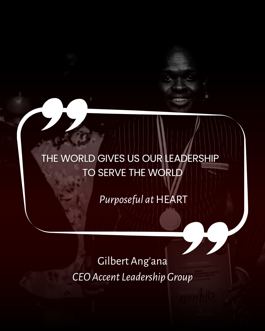 Gilbert Ang’ana is an Award-winning Organizational Leadership Coach, Teacher, and Consultant | Keynote Speaker | CEO, Accent Leadership Group | Books Authored: “Engaged & Productive” and “Purposeful at HEART”